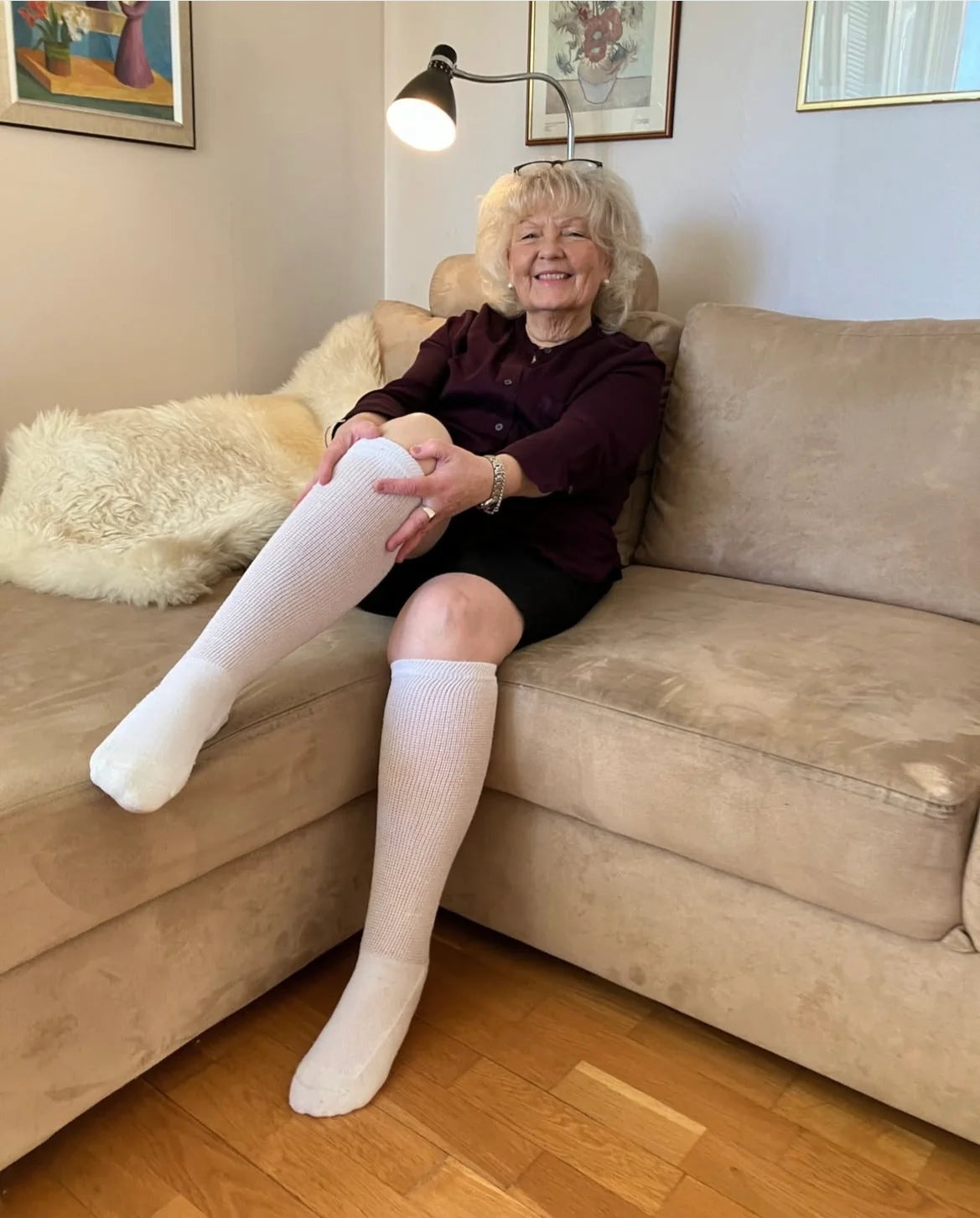 No! Unlike traditional compression socks, these provide gentle, soothing pressure - not tight restriction. The sensation is comforting and embracing, like a hug around your legs. Most people forget they're even wearing them.
